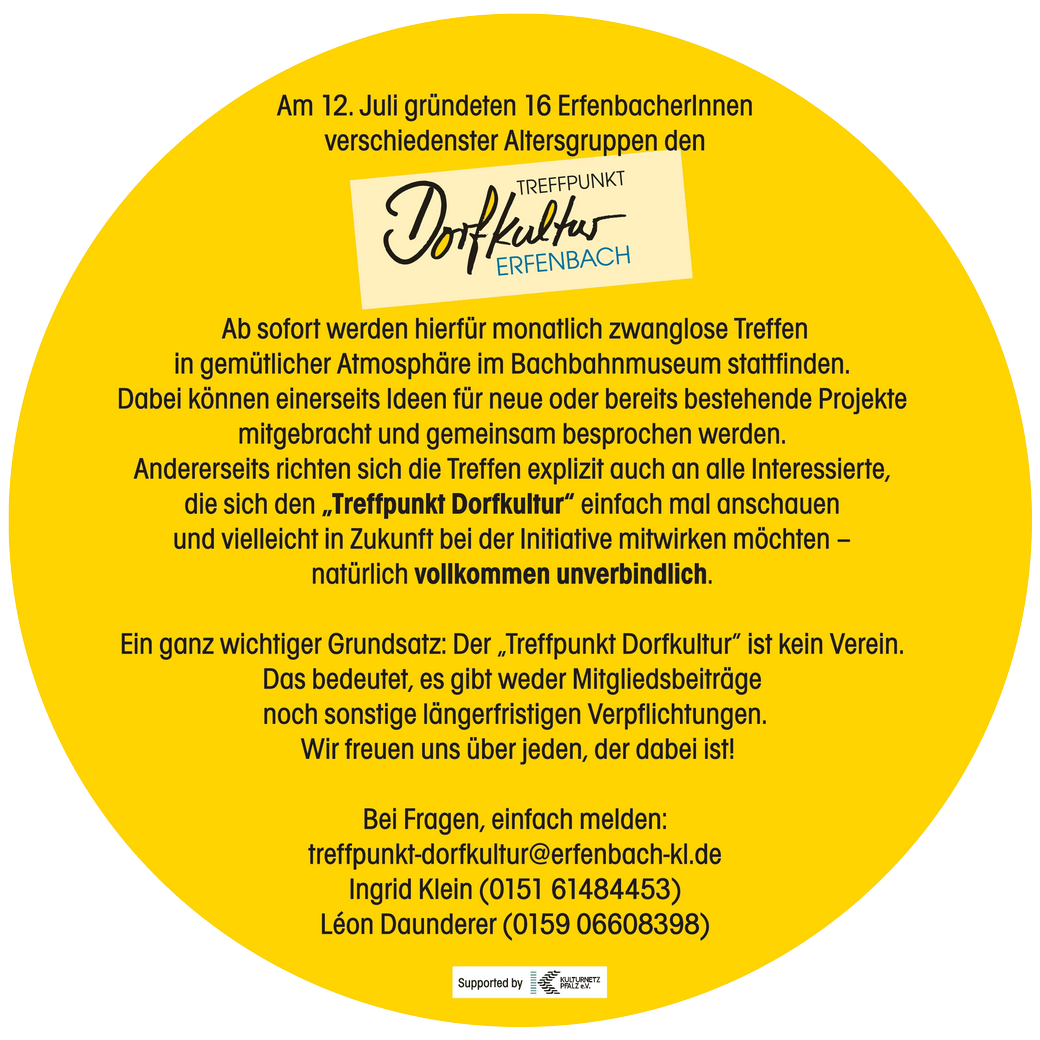 - Mail an: treffpunkt-dorfkultur@erfenbach-kl.de